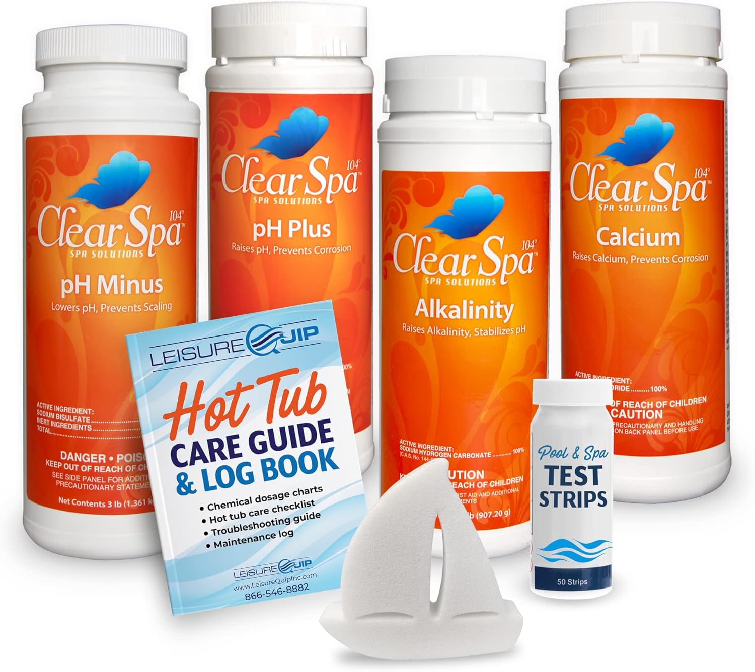 Amazon Com Clear Spa Hot Tub Balancing Chemical Bundle Includes Ph Plus Ph Minus Alkalinity Calcium Test Strips Scumboat And Hot Tub Care Guide E Book Patio Lawn Garden